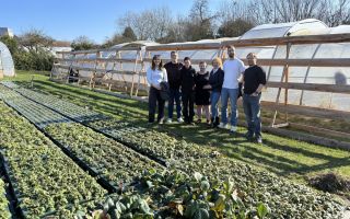 Zu Besuch in Ibbenbüren bei der Gärtnerei Beyer gemeinsam mit Knauber und GDL Belke. Hier erfolgt seit gut zwei Wochen die Anzucht in den Fassadenpaneelen. Alle Pflanzen sind regional gezogen und in Handarbeit eingesetzt. Die Anwuchsphase ist ein wichtiger Moment für den Erfolg der Fassadenbegrünung. Die Wurzelballen der Setzlinge dringen nun kontinuierlich in die Steinwolle ein und geben den Pflanzen Festigkeit und Entwicklungsraum.